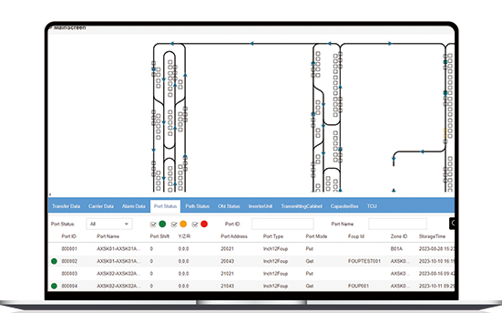 OHT路径规划及调度,用路径算法找出多路线中的最佳路径,并时实监控交通避开事故点。对接MES上位机,将下发的传输和控制命令,转换为对AMHS的控制并向HOST上报相关状态信息。